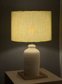 Elegant ceramic table lamp creating warm, cozy, modern ambiance. -